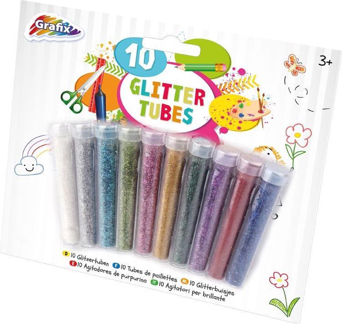Knutselen is leuk voor groot en klein. Deze 10 buisjes met glitters zorgen voor veel knutselplezier! Afmetingen buisje: 7,5 x 1,5 x 1,5 cm. Afmetingen verpakking: 18 x 15 x 1,5 cm. EAN: 8715427048390 Ref. nr.: 15-0395/IT