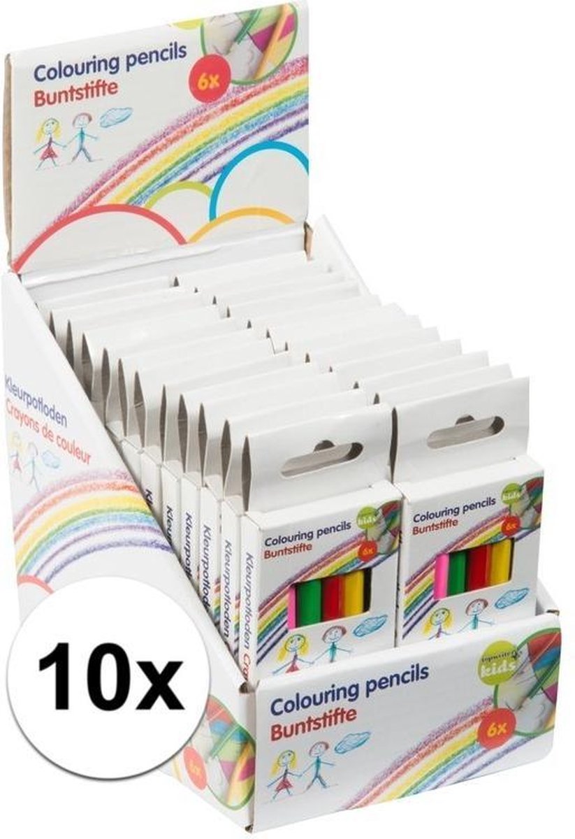 10x Mini houten kleurpotloden in doosje van 6 stuks in verschillende kleuren. Type: HB. Lengte: 8,5 cm. Ook leuk als weggevertje bij een kinderfeestje. U ontvangt 10 pakjes kleurpotloden.