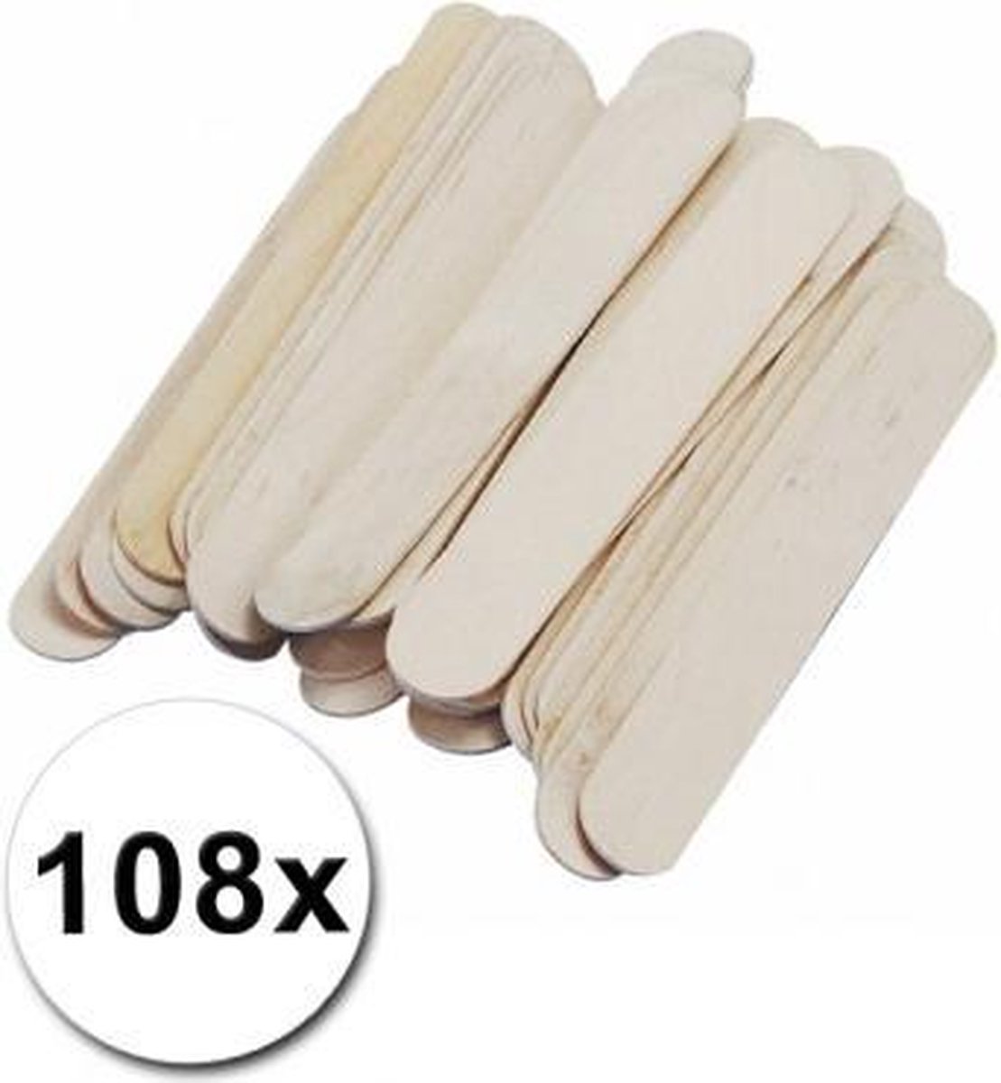 Hobby materiaal knutselhoutjes naturel 150 x 20 mm. In deze zak zitten 108 naturel gekleurde knutselhoutjes met een formaat van ongeveer 150 x 20 mm.