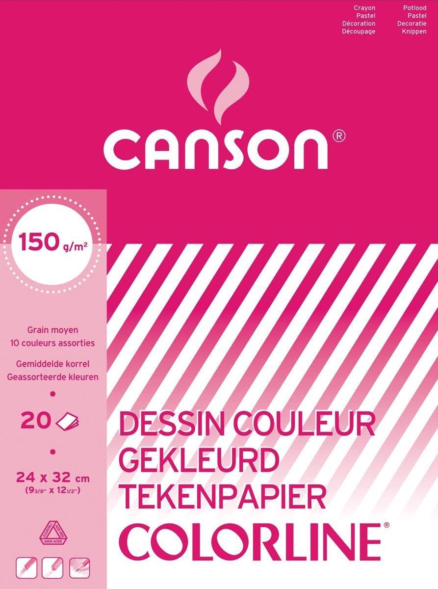 Blok van 20 blad. Papier van 150 g/m². Geschikt voor dagelijkse toepassingen, knippen, plakken, schetsen en tekenen. 10 geasssorteerde kleuren.\\n\\nft 29,7 x 42 cm (A3)