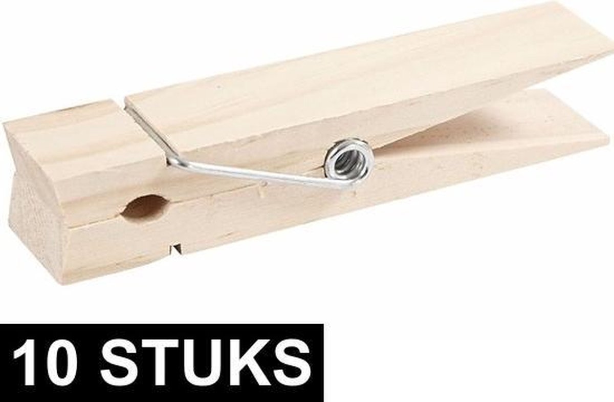 10x Grote XXL wasknijpers 15 cm. Deze wasknijper is gemaakt van berkehout. De XXL wasknijper heeft een formaat van ongeveer 15 x 3,5 x 3,5 cm. U ontvangt 10 knijpers.