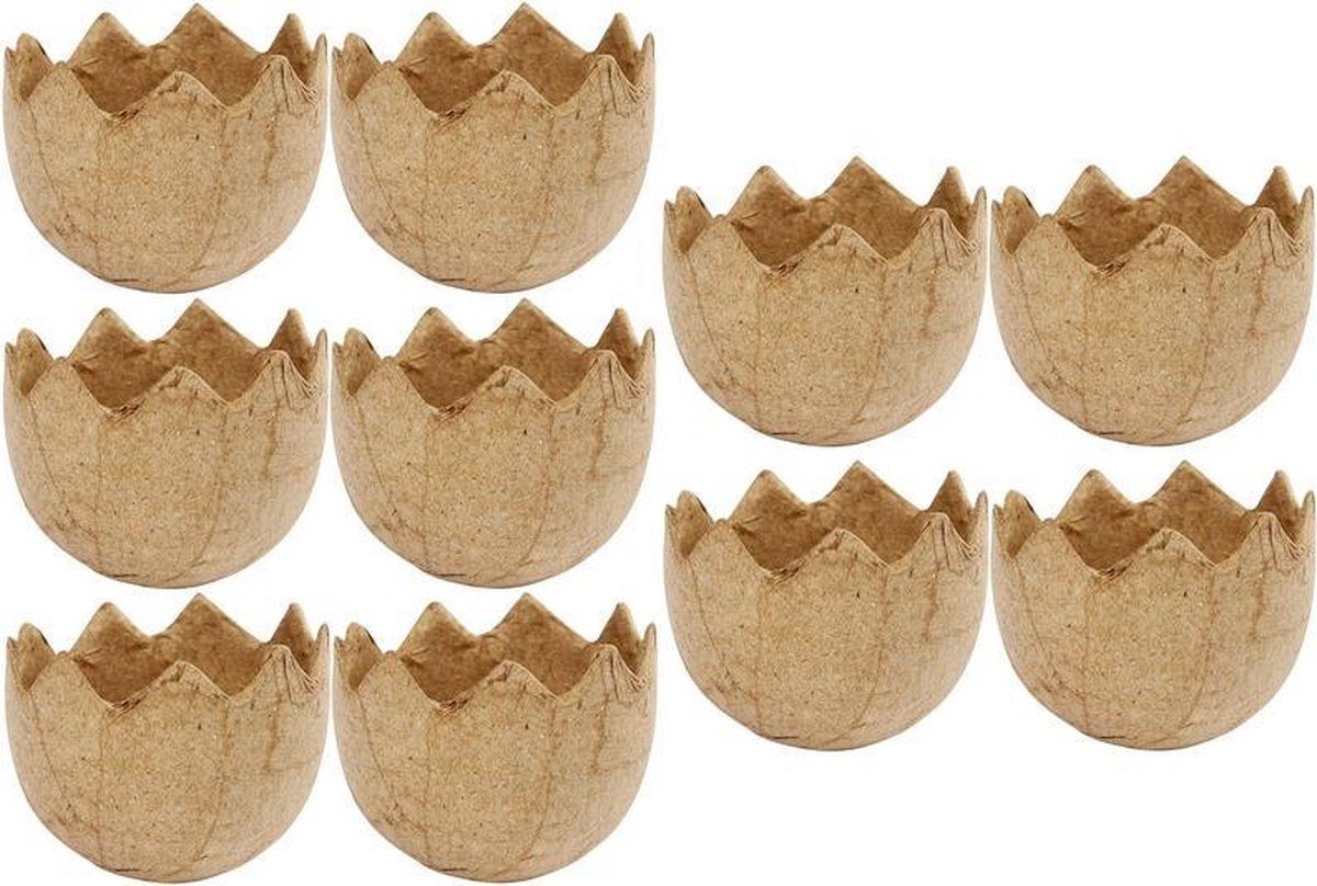 Een halve eierschaal, gemaakt van papier mache, 10 stuks. Deze eierschaal kan worden geschilderd met allerlei verfsoorten of worden beplakt met klei. Hoogte: ca. 4 cm. Diameter: ca. 5 cm. Foto 3 is een voorbeeld wat u ermee kunt maken. DIY eierschalen beschilderen Pasen paasdecoratie artikelen.
