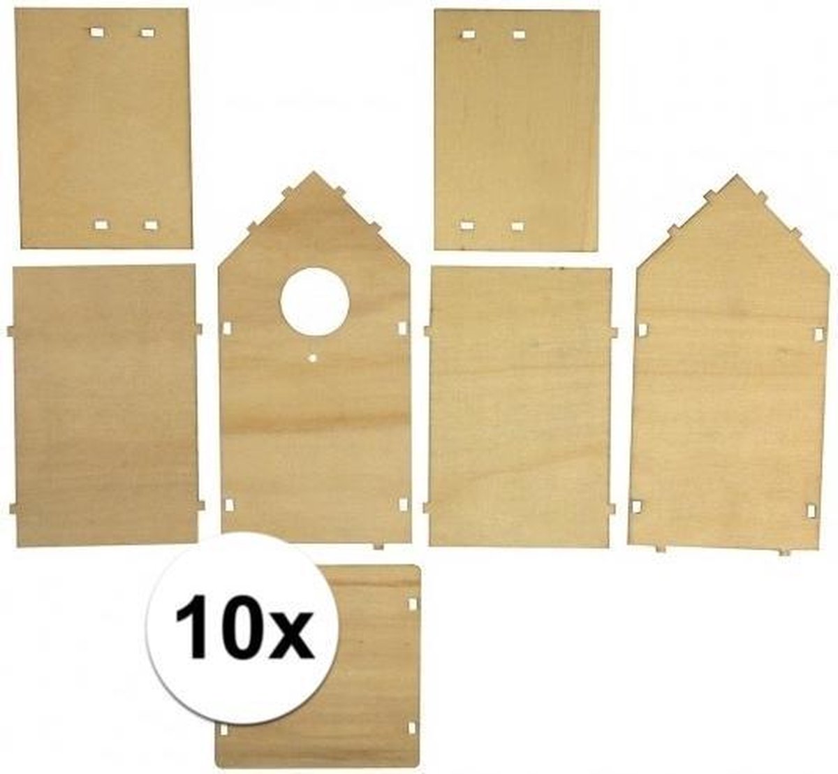 10x Vogelhuisjes om zelf te bouwen. Houten vogelhuisjes om zelf in elkaar te zetten en de decoreren. Het huisje is 7-delig, ongeveer 10 x 11 en 5 x 17 cm groot.