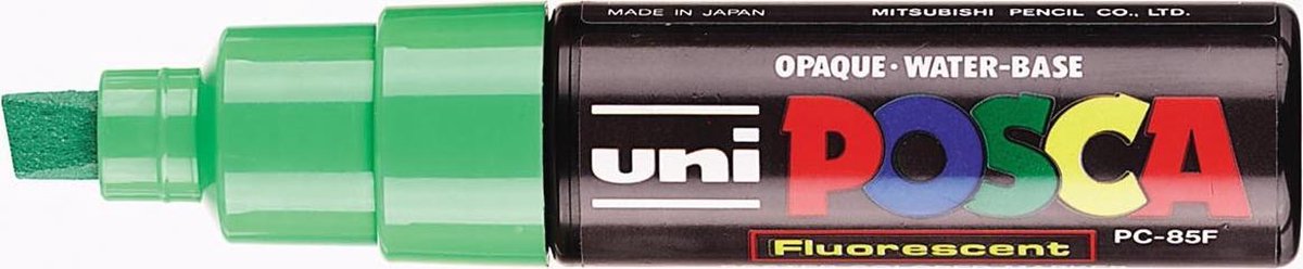 Merkstift op waterbasis en gepigmenteerde inkt. Schrijfbreedte: 8 mm. Ideaal om te schilderen, tekenen, schrijven en markeren op elk oppervlak. Met ondoorlatende, heldere kleuren. Dekkend, overschrijfbaar, mengbaar, waterbestendig, constant bij langdurigeblootstelling aan licht en reukloos. Geschikt voor alle ondergronden. Permanent op poreuze oppervlakken.\\n\\nfluo groen