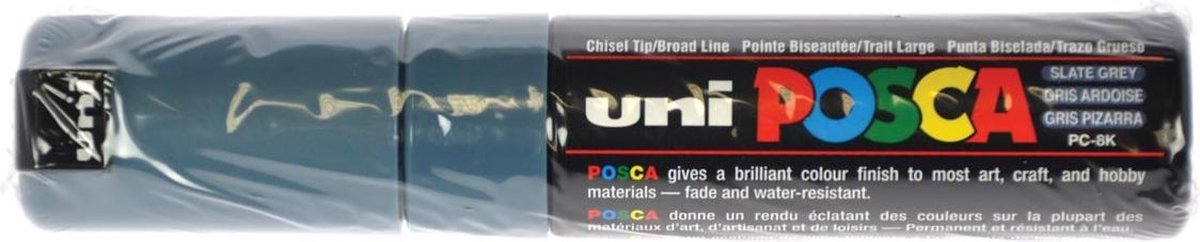 Merkstift op waterbasis en gepigmenteerde inkt. Schrijfbreedte: 8 mm. Ideaal om te schilderen, tekenen, schrijven en markeren op elk oppervlak. Met ondoorlatende, heldere kleuren. Dekkend, overschrijfbaar, mengbaar, waterbestendig, constant bij langdurigeblootstelling aan licht en reukloos. Geschikt voor alle ondergronden. Permanent op poreuze oppervlakken.\\n\\nleigrijs