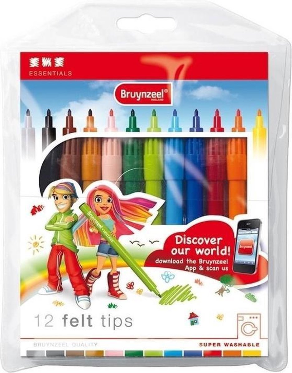 12 hoge kwaliteit Bruynzeel viltstiften. De inkt is op waterbasis en super uitwasbaar, en de punten zijn niet weg te drukken. Drogen niet uit en gaan lang mee. Geschikt voor kinderen vanaf 5 jaar.
