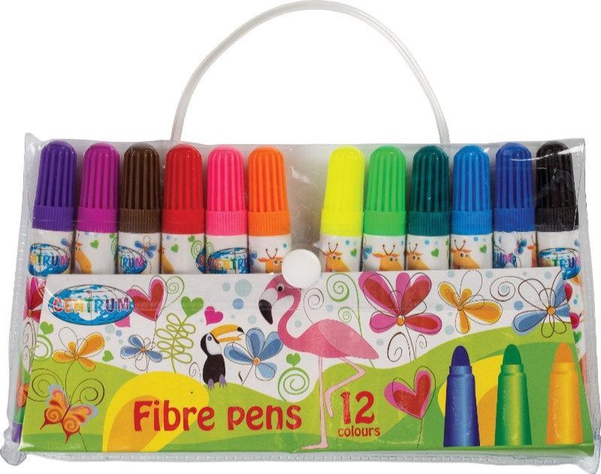 Viltstiften, 12 kleuren. Lengte - 95 mm, diameter - 14 mm. Op waterbasis. In PVC verpakking.