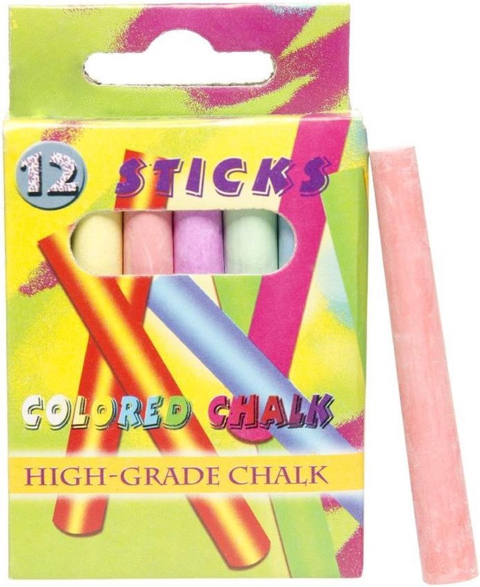 12x Gekleurde schoolbord krijtjes. Een krijtje heeft een lengte van ca. 7.5 cm. Afmeting doosje: 10.5 x 6 x 2 cm. Hobby/kantoor/speelgoed schoolbordkrijtjes gekleurd.