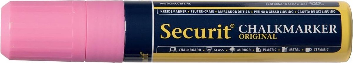 Met brede punt van 7-15 mm. Deze krijtmarker loopt niet uit, verkleurt niet en is bestand tegen lichte regen. Geschikt voor krijtborden, glas, spiegel, etc. Verwijderbaar met een spons en water.\\n\\nroze