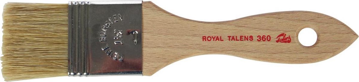 "Techniek: aanbrengen van vernis. Haar: varkenshaar. Vorm: spalter (plat, recht en breed). Platte, aluminium huls. Steel: kort, ongelakt blank hout, lengte 145-190 mm. Voordelige kwast voor het vernissen van werkstukken of het prepareren van ondergronden. Maten aangegeven in inches (1 inch = 2,5 cm).\\n\\n1 1/2"