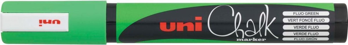 Regenbestendige krijtmarker voor gebruik zowel binnen- als buitenshuis. Uitwisbaar met een vochtige doek van bijna alle niet-poreuze oppervlakken. Ideaal voor menu's, krijtborden, lichtborden en ramen. Heldere kleuren.\\n\\nfluo groen, ronde punt van 1,8 - 2,5 mm