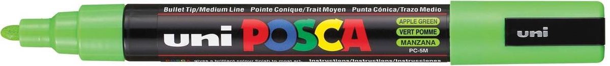 Schrijfbreedte: 1,8 - 2,5 mm. Merkstift op waterbasis en gepigmenteerde inkt. Ideaal om te schilderen, tekenen, schrijven en markeren op elk oppervlak. Met ondoorlatende, heldere kleuren. Dekkend, overschrijfbaar, mengbaar, waterbestendig, constant bij langdurige blootstelling aan licht en reukloos. Geschikt voor alle ondergronden. Permanent op poreuze oppervlakken.\\n\\nappelgroen
