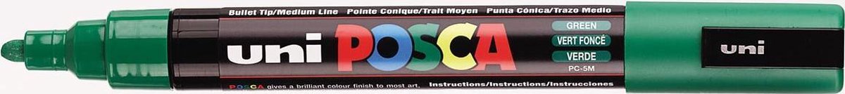 Schrijfbreedte: 1,8 - 2,5 mm. Merkstift op waterbasis en gepigmenteerde inkt. Ideaal om te schilderen, tekenen, schrijven en markeren op elk oppervlak. Met ondoorlatende, heldere kleuren. Dekkend, overschrijfbaar, mengbaar, waterbestendig, constant bij langdurige blootstelling aan licht en reukloos. Geschikt voor alle ondergronden. Permanent op poreuze oppervlakken.\\n\\ndonkergroen