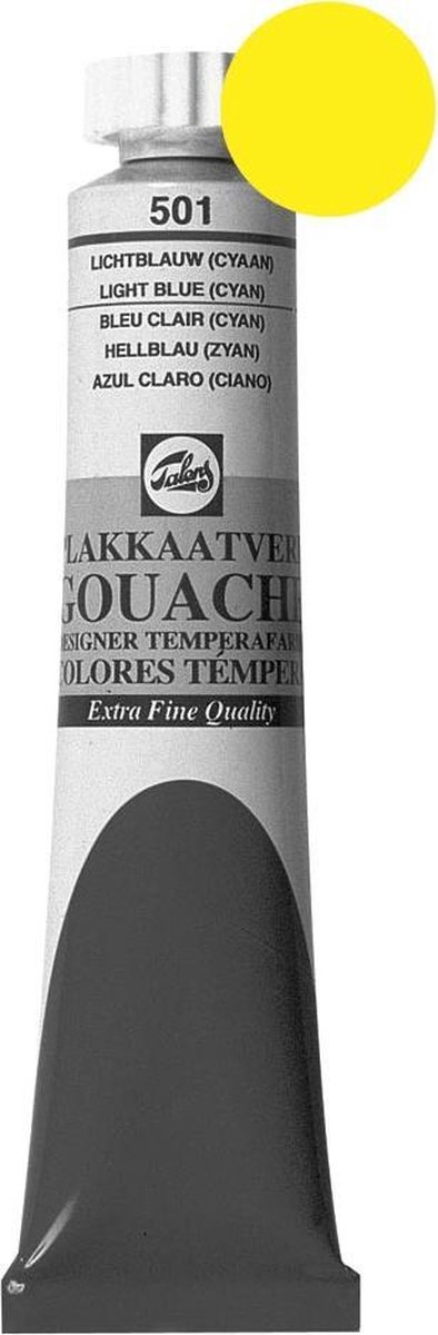 Tube van 20 ml. Dekkende en hoog gepigmenteerde verf met water verdunbaar. Droogt binnen enkele minuten. Ideaal om te schilderen op streeploze en matte oppervlakken. Hecht op iedere vetvrije en poreuze ondergrond zoals papier, karton, maar ook op hout, gips en aardewerk.\\n\\ncitroengeel (primair)