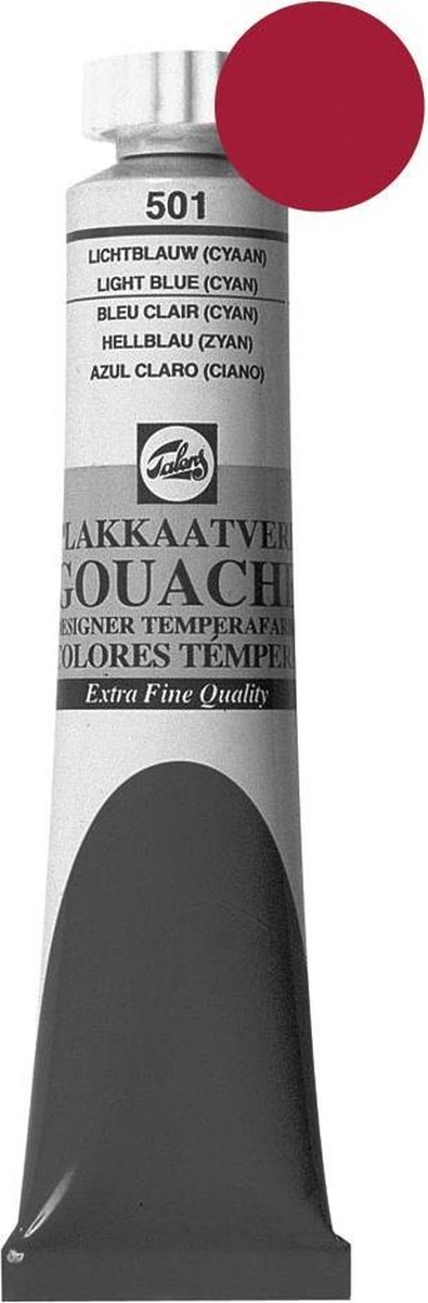 Tube van 20 ml. Dekkende en hoog gepigmenteerde verf met water verdunbaar. Droogt binnen enkele minuten. Ideaal om te schilderen op streeploze en matte oppervlakken. Hecht op iedere vetvrije en poreuze ondergrond zoals papier, karton, maar ook op hout, gips en aardewerk.\\n\\nkarmijnrood