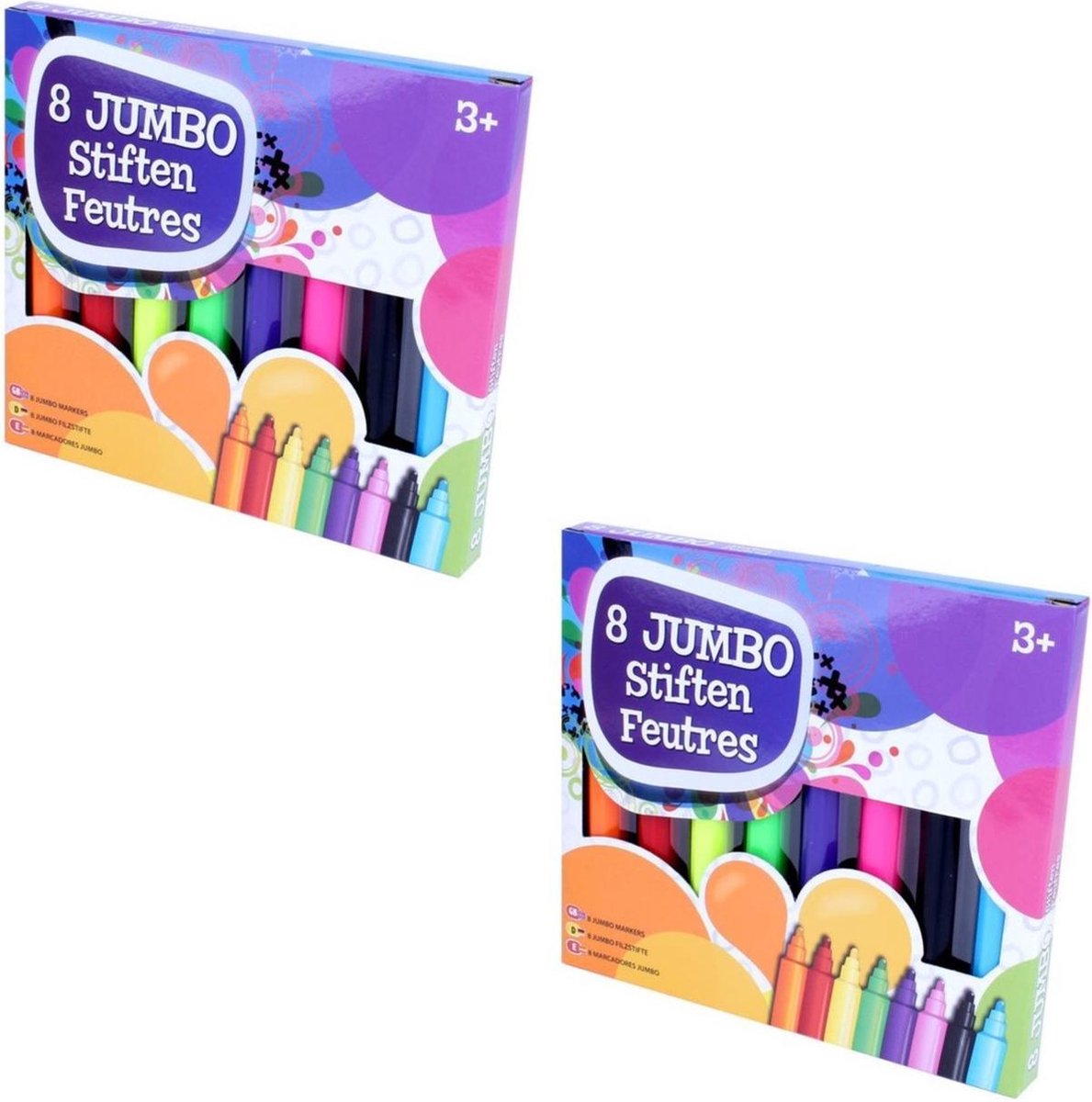 16x Gekleurde jumbo stiften/markers. Set van 16x grote stiften in verschillende kleuren. De stiften zijn voorzien van een dikke punt om mee te kleuren. Inhoud: 16x stiften. Merk: Grafix. U ontvangt 2 verpakkingen met 8 markers/stiften. Kleuren creatief speelgoed voor kinderen. Hobbymateriaal/knutselmateriaal tekenen/kleuren met viltstiften, voor kinderen en volwassenen.