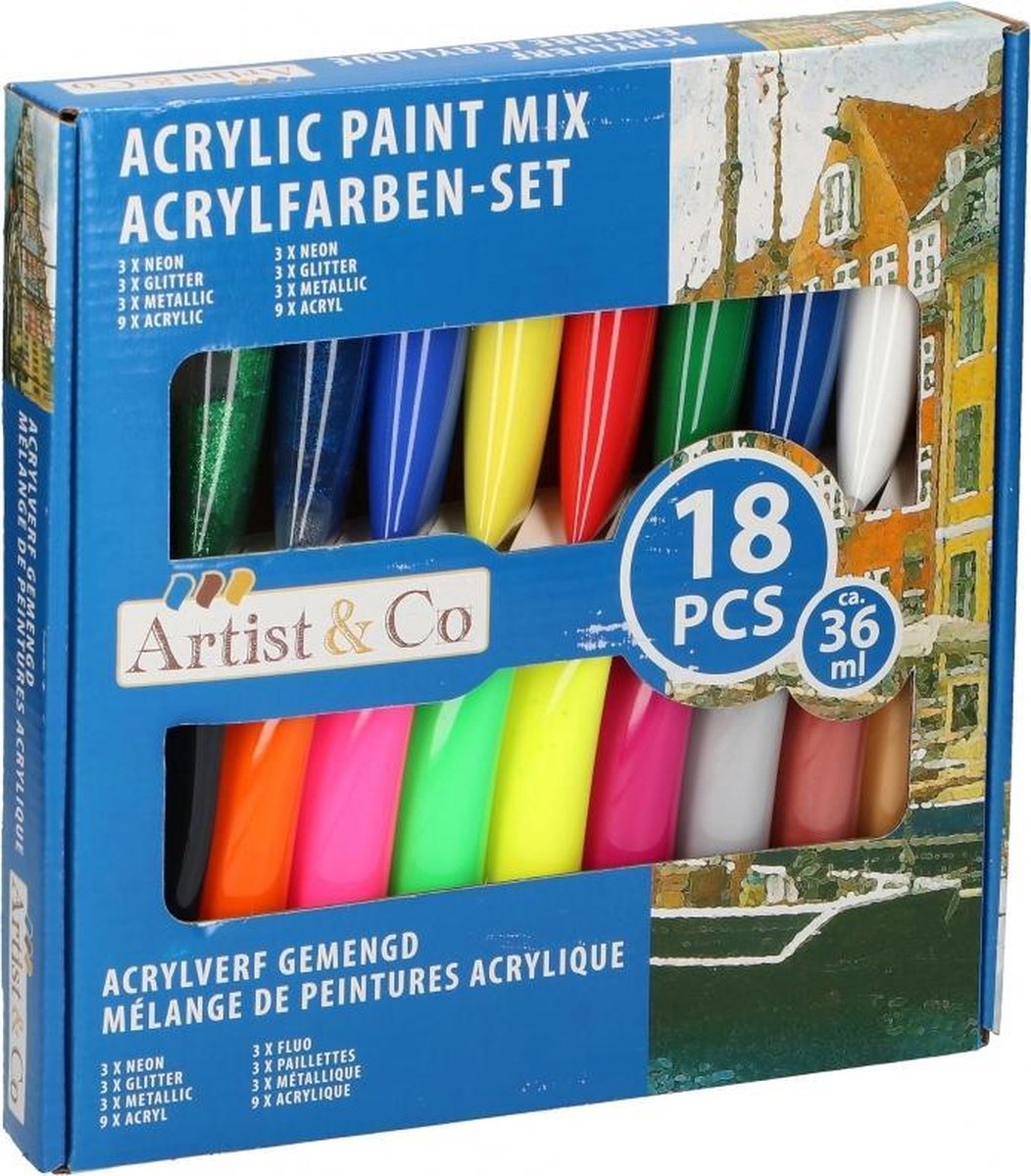 18x Acrylverf set in tubes 36 ml - Hobbyverf