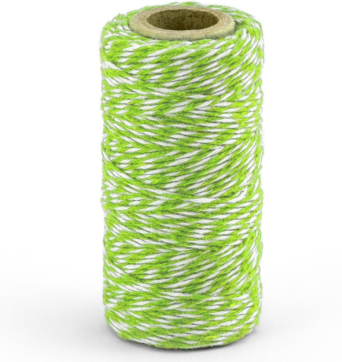 1x Groen/wit bakkerstouw 50 meter hobby materiaal. Groen/wit touw op rol. Het groen/witte touw is ook wel bekend als bakkerstouw, baktouw, slagerstouw, bindtouw of keukentouw. Materiaal touw: 100% katoen, kokertje: karton. Toepassing: cadeautjes verpakken, geschenken inpakken, traktaties maken. Aantal: 1x. Bakers twine hobbymateriaal cadeauverpakkingen cadeaulint.