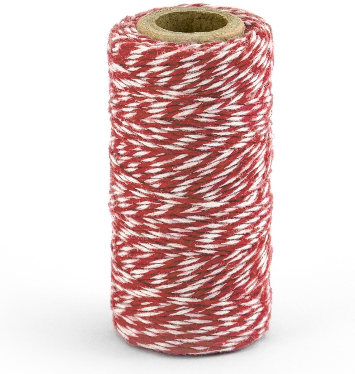 1x Rood/wit bakkerstouw 50 meter hobby materiaal. Rood/wit touw op rol. Het rood/witte touw is ook wel bekend als bakkerstouw, baktouw, slagerstouw, bindtouw of keukentouw. Materiaal touw: 100% katoen, kokertje: karton. Toepassing: cadeautjes verpakken, geschenken inpakken, traktaties maken. Aantal: 1x. Bakers twine hobbymateriaal cadeauverpakkingen cadeaulint.
