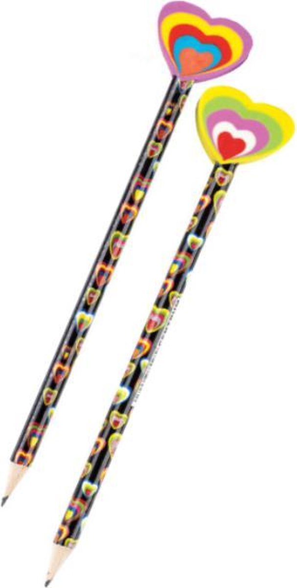 2 potloden met hartjes en gum in hart vorm | paars en geel