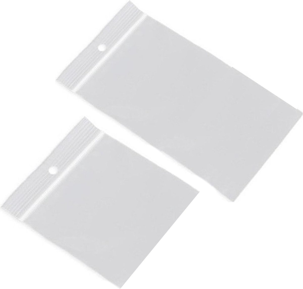 200x Gripzakjes/verpakkingszakjes 100 x 100 mm en 120 x 180 mm. Plastic hersluitbare verpakkingszakjes met gripsluiting/druksluiting, in twee formaten. Aantal zakjes: 200x, verdeeld over 100 stuks 100 x 100 mm en 100 stuks 120 x 180 mm. Formaat: 100 x 100 mm (10 x 10 cm) en 120 x 180 mm (12 x 18 cm). Ophanggaatje: 5 mm rond ponsgat. Kleur: transparant met witte streep. Materiaal: LDPE (lagedichtheidpolyetheen, een soort plastic/kunststof). Dikte: 50 micron. U kunt, indien gewenst, met een watervaste stift/markeerstift iets op het zakje schrijven. De tekst wel even afdeppen/laten drogen zodat de stift niet meer afgeeft. Handige plastic verpakkingsmateriaal zakjes voor hobbyprojecten of voor het bewaren van kruiden, kraaltjes, muntjes, schroefjes, pluggen of andere kleine producten. Ook uitermate geschikt voor het presenteren of verzenden van kleine onderdelen/producten. bestaande uit 1x 100x Gripzakjes/verpakkingszakjes 100 x 100 mm/10 x 10 cm, 1x 100x Gripzakjes/verpakkingszakjes 120