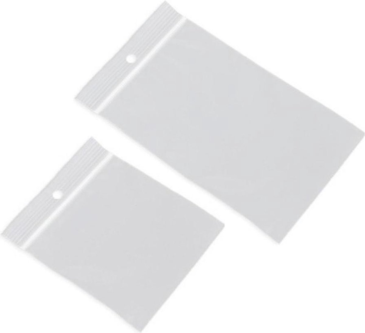 200x Gripzakjes/verpakkingszakjes 40 x 40 mm en 40 x 60 mm. Plastic hersluitbare verpakkingszakjes met gripsluiting/druksluiting, in twee formaten. Aantal zakjes: 200x, verdeeld over 100 stuks 40 x 40 mm en 100 stuks 40 x 60 mm. Formaat: 40 x 40 mm (4 x 4 cm) en 40 x 60 mm (4 x 6 cm). Ophanggaatje: 5 mm rond ponsgat. Kleur: transparant met witte streep. Materiaal: LDPE (lagedichtheidpolyetheen, een soort plastic/kunststof). Dikte: 50 micron. U kunt, indien gewenst, met een watervaste stift/markeerstift iets op het zakje schrijven. De tekst wel even afdeppen/laten drogen zodat de stift niet meer afgeeft. Handige plastic verpakkingsmateriaal zakjes voor hobbyprojecten of voor het bewaren van kruiden, kraaltjes, muntjes, schroefjes, pluggen of andere kleine producten. Ook uitermate geschikt voor het presenteren of verzenden van kleine onderdelen/producten. bestaande uit 1x 100x Gripzakjes/verpakkingszakjes 40 x 40 mm/4 x 4 cm, 1x 100x Gripzakjes/verpakkingszakjes 40 x 60 mm/4 x 6 cm
