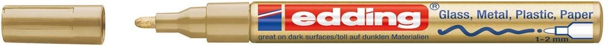 Lakmarker met ronde punt. Schrijfbreedte: 1 - 2 mm. Voor het schrijven en markeren op bijna alle materialen zoals glas, plastic, hout en metaal. Permanente, reukarme, hittebestendige en lakachtige dekkende inkt. Voor gebruik goed schudden en pompen.\\n\\ngoud