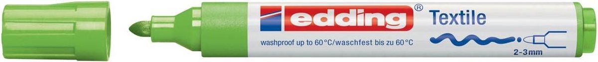 Met ronde punt. Schrijfbreedte: 2 - 3 mm. Lichtbestendige, reukneutrale pigmentinkt op waterbasis. Voor het beschrijven en decoreren van bijna alle textielsoorten. Na het fixeren wasbestendig tot 60 °C.\\n\\nlichtgroen