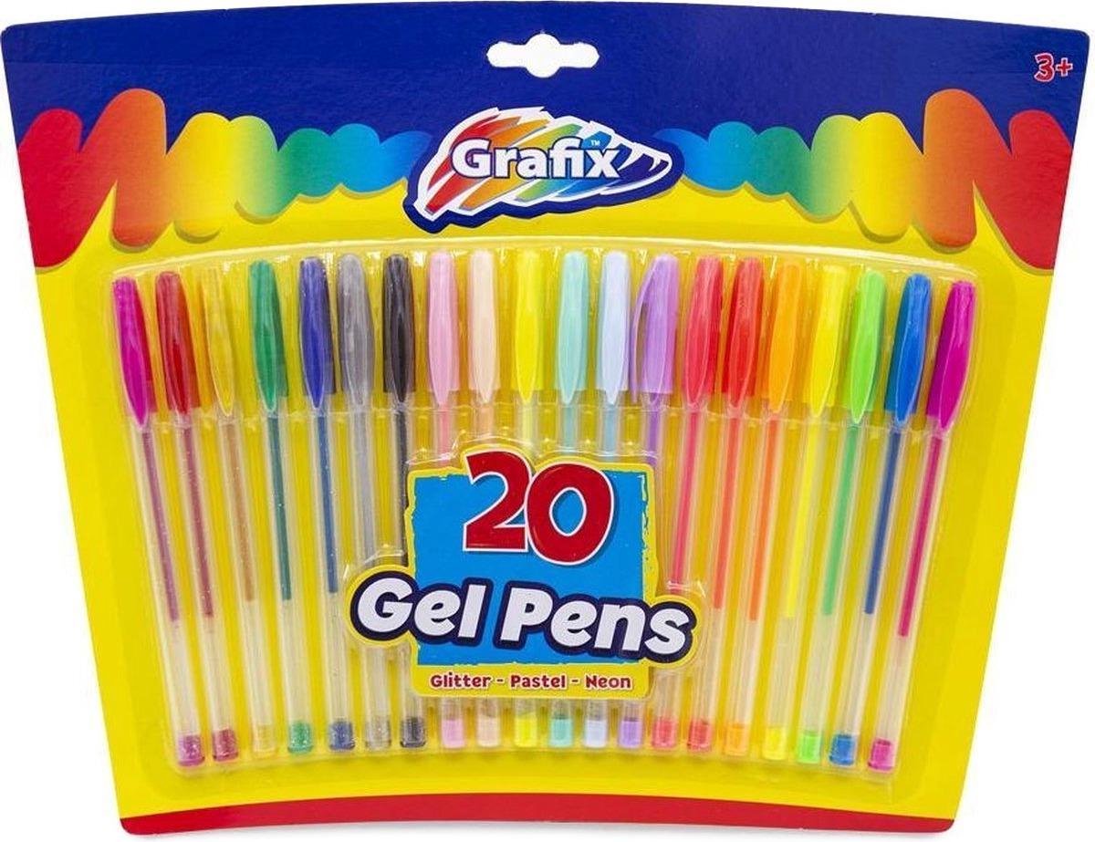 20x Gelpennen gekleurd 15 cm. Gelpennen in glitter, pastel en neon kleuren. Deze gelpennen zijn ideaal voor tekenen, versieren en schrijven. Zowel te gebruiken op licht als donker papier. Formaat pennen per stuk: ca. 15 cm. Gelpennen met glitters hobby/knutsel/tekenmateriaal.