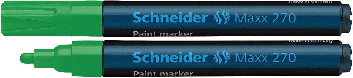 Ronde punt. Schrijfbreedte: 1- 3 mm. Kan gebruikt worden op bijna alle materialen zoals papier, plastiek, glas, metaal, leder, rubber, etc. Bestand tegen temperaturen tot 300 °C. Waterresistente inkt, zonder tolueen of xyleen.\\n\\ngroen