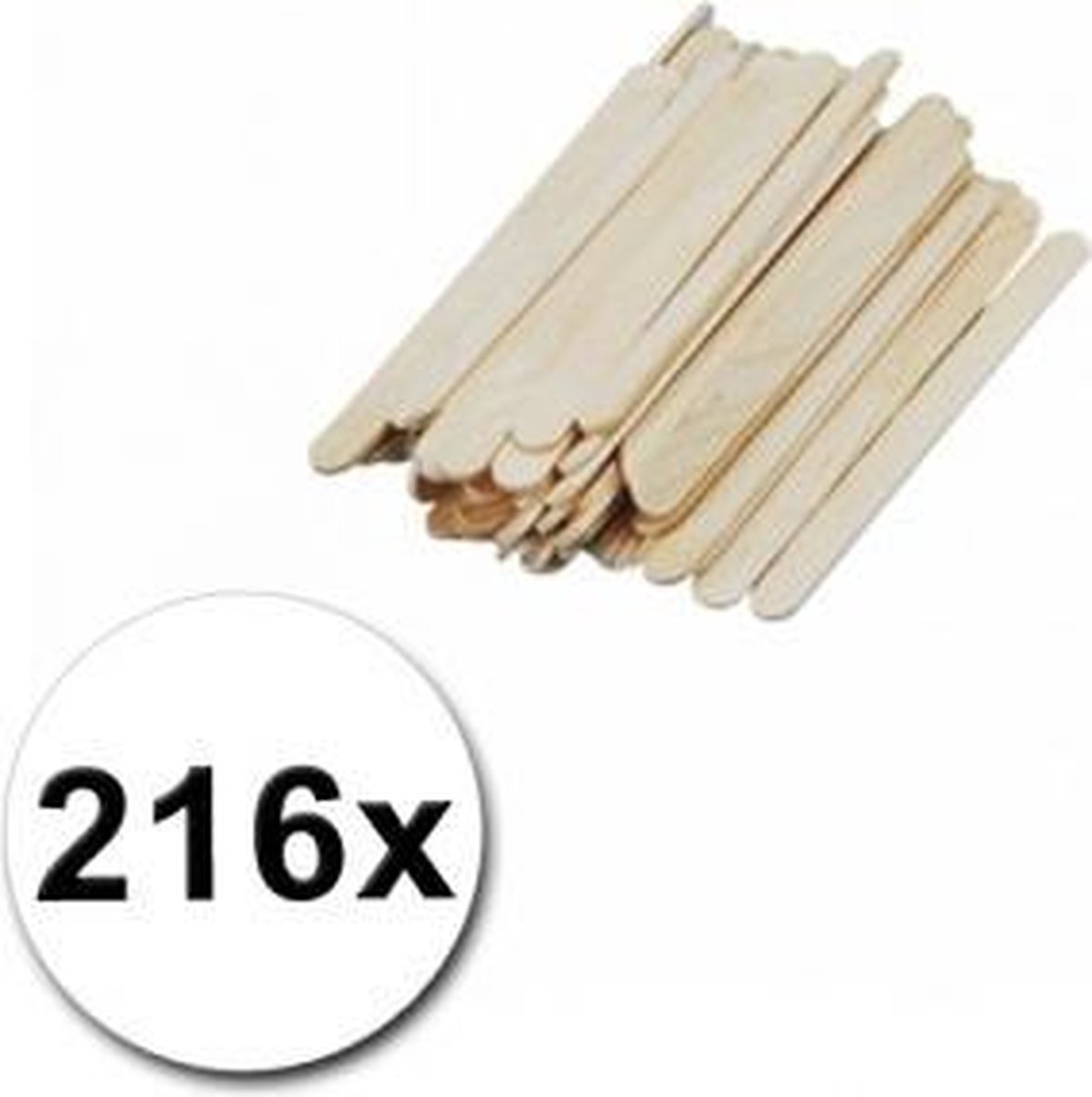 216 naturel ijsstokjes knutselhoutjes 11 x 1,1 cm . Zak gevuld met 216 houten stokjes met een formaat van 110 x 11 mm. Te gebruiken voor diverse doeleinden, zoals bijvoorbeeld het maken van een poppenhuisvloer.