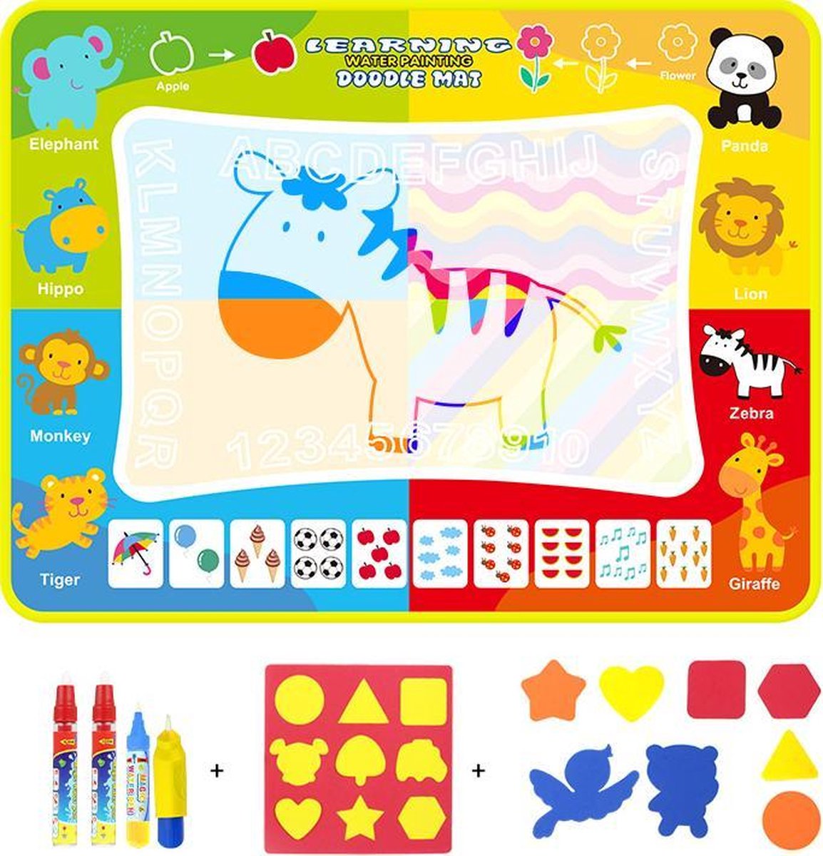 ? Alles-in-1 set ?Extra grote tekenmat ? Oneindig speelplezier ? Lekker tekenen zonder rommel ? De tekeningen verdwijnen automatisch na 5 minuten ? Achterkant van de mat is waterbestendig dus overal kan getekend worden ? Makkelijk schoon te maken ? Complete set met heel veel extra’s Laat uw kinderen plezier maken op dit unieke speelmat. Dit is niet alleen een superleuke tekenmat voor kinderen maar ook voor de ouders. De stiften werken alleen op de speciale mat. U kunt uw kinderen dus lekker hun gang laten gaan zonder bang te hoeven zijn dat vlekken maken op uw vloer of tafel.