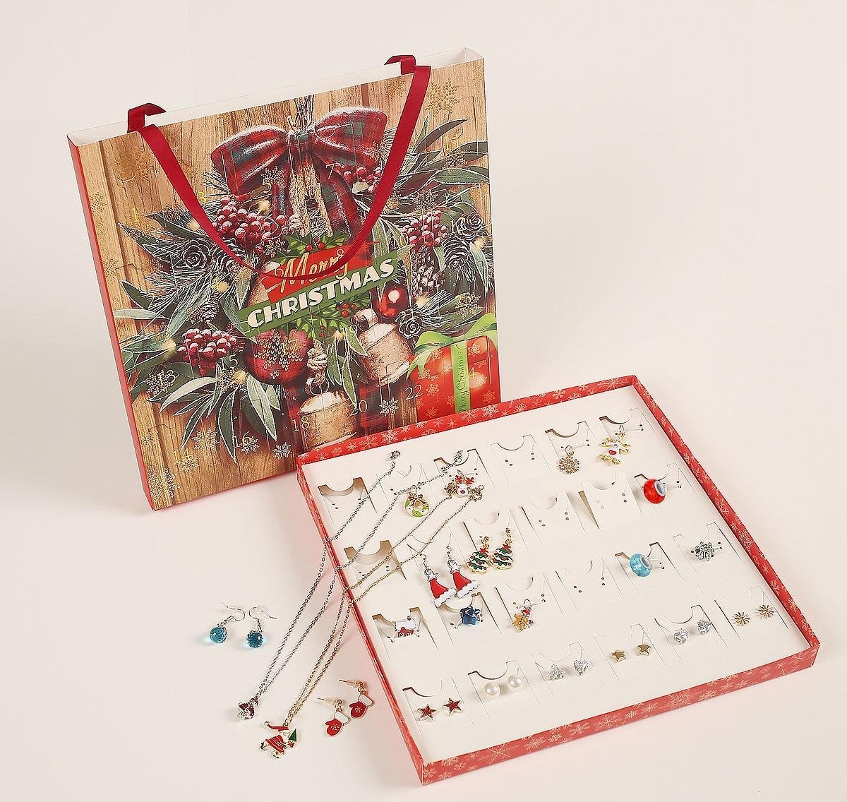 24 in 1 kerst geschenkdoos ketting Oorhaak Oorbellen creatief eenvoudige doos maat: 25x25x3cm gewicht: 175g pakket omvat: 2 x ketting 4 paar Oorhaak 6 paar Oorbellen 12 x accessories