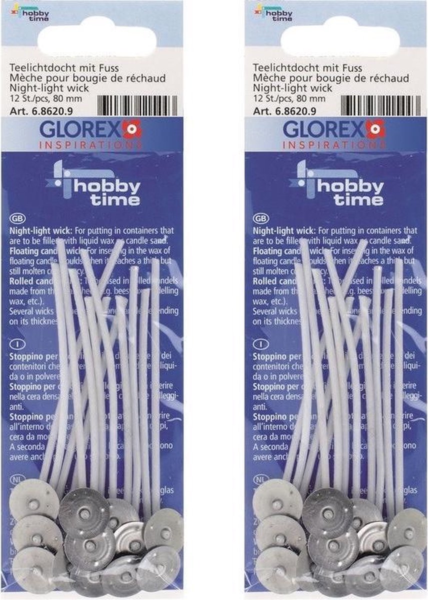24x Kaars/waxine/theelicht lontjes, geschikt voor o.a. kaarsgel, wikkelkaarsen en kaarszand. Plaats ze in een geschikte container/(sjabloon)glas en vul deze vervolgens met was, gel of zand. Tip: leg op de bovenrand van het glas een stokje, waar u het uiteinde van de land aan vast maakt zodat deze rechtop blijft. Lengte: ca. 8 cm. Materiaal: metaal/was/wax. Inhoud: 24 stuks. Hobby/knutselmateriaal - Kaarsen maken - Waxlontjes/kaarslontjes - Lonten/lontjes voor kaarsen.