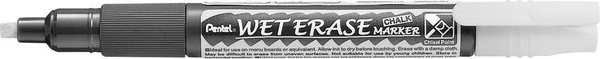 Beitelvormige punt. Schrijfbreedte: 2 - 4 mm. Semi-permanente marker voor gebruik op niet-poreuze oppervlakken. Uitwisbaar met een vochtige doek van bijna alle niet-poreuze oppervlakken. Uiterst geschikt voor gebruik buiten: de inkt loopt niet uit, zelfs niet bij regenweer. Uitstekend geschikt voor lichtborden, etalages, enz.\\n\\nwit