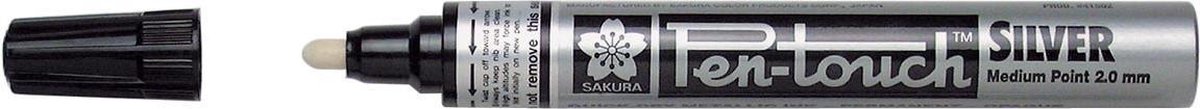 Speciaal ontwikkeld voor decoratieve toepassingen. De inkt bevat enige alcohol en biedt in combinatie met de speciale metallic pigmenten een veilig, dekkend, sneldrogend metaalachtig resultaat. De permanente inkt is watervast, lichtbestendig en bestand tegen chemicaliën. Toepasbaar op vele papiersoorten en niet-poreuze oppervlakken.\\n\\npunt van 2 mm, zilver
