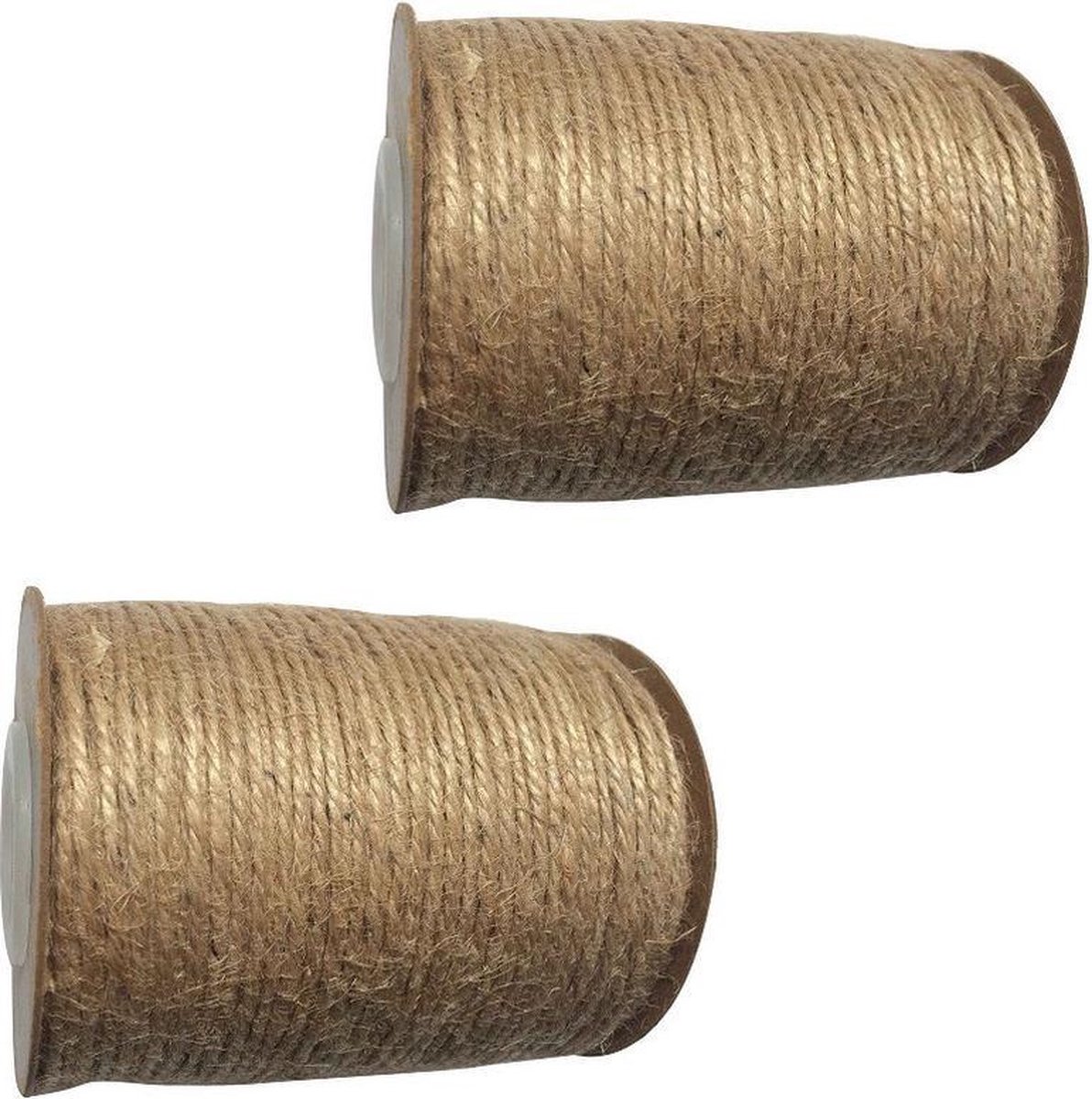 2x Hobby/decoratie jutegaren naturel rol/spoel van 100 meter. Het touw is ongeveer 2 mm breed. Lengte: 100 meter. Materiaal: jute. Creatief hobby materiaal / decoratietouw. Cadeau verpakkingsmateriaal decoratie touw naturel kleur.