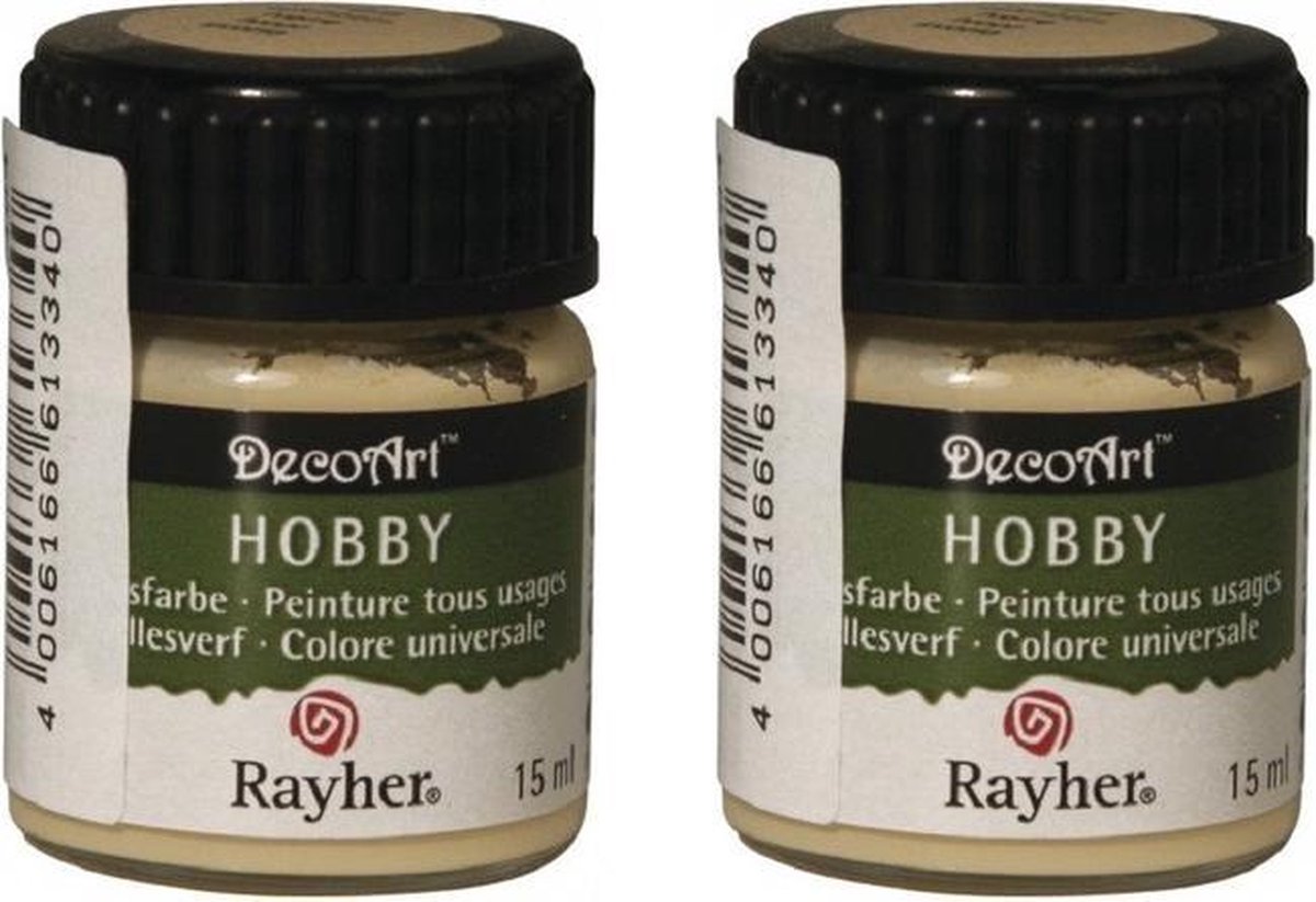 Ivoor witte acrylverf/allesverf potje 15 ml hobby/knutselmateriaal. Een klein potje ivoor witte acrylverf met een inhoud van ongeveer 15 ml. Een goed dekkende acrylverf die, naar wens, waterverdunbaar is. Des te minder water u toevoegt, des te dikker en dekkender de verf blijft. Geschikt voor bijna alle ondergronden. Ideaal om bijvoorbeeld piepschuim, hout, papier mache of plastic/kunststof mee te beschilderen. De verf heeft een matte finish. Aantal potjes: 2. Formaat per potje: diameter 2,5 cm, hoogte 4 cm. Inhoud per potje: 15 ml. Materiaal verpakking: kunststof. Kleur: mat ivoor wit. Hobbyverf schildermateriaal voor DIY hobbyprojecten/knutselprojecten. Knutselmateriaal allesverf. Surprises maken basismateriaal.