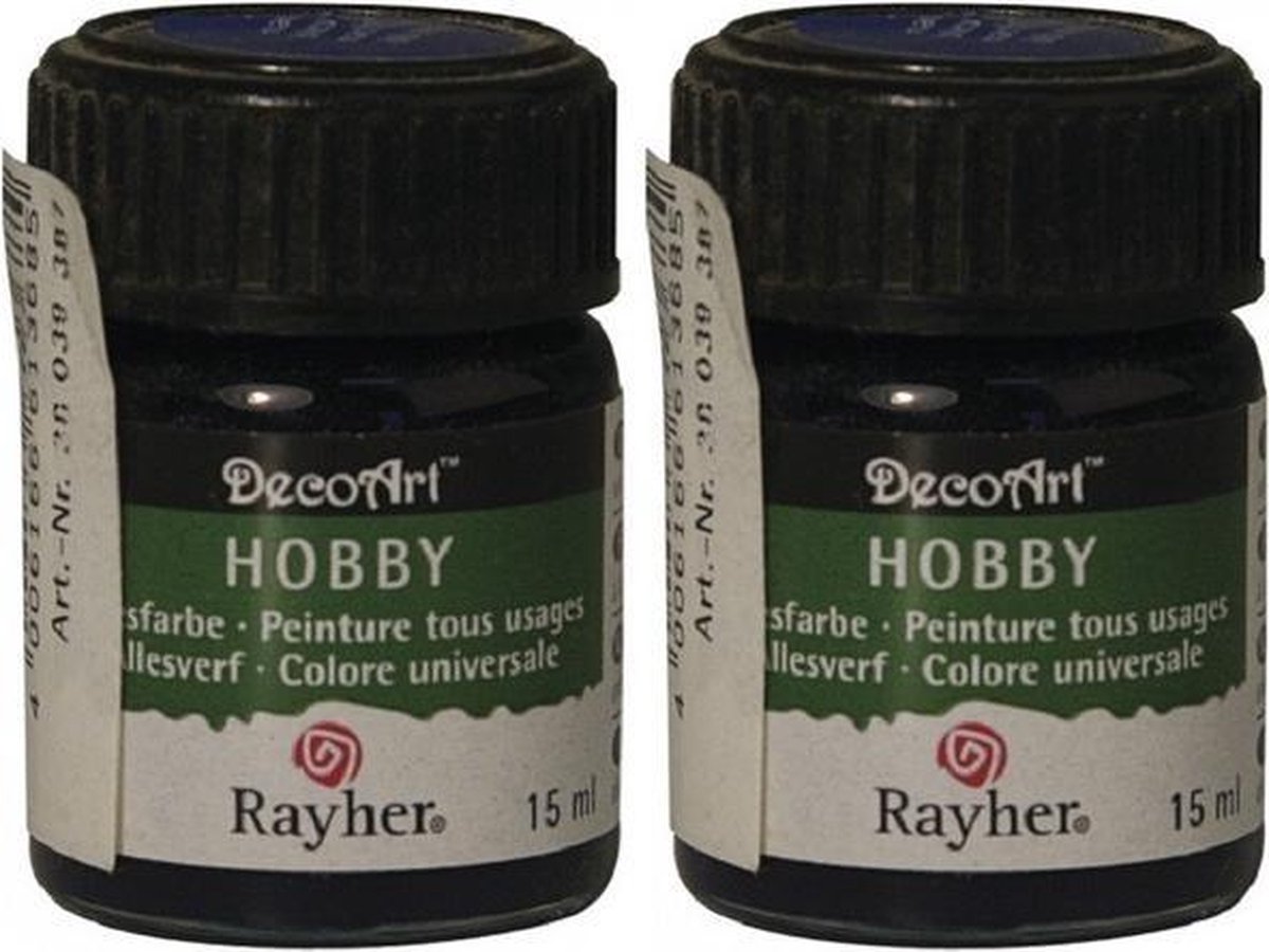 Navy blauwe acrylverf/allesverf potje 15 ml hobby/knutselmateriaal. Een klein potje navy blauwe acrylverf met een inhoud van ongeveer 15 ml. Een goed dekkende acrylverf die, naar wens, waterverdunbaar is. Des te minder water u toevoegt, des te dikker en dekkender de verf blijft. Geschikt voor bijna alle ondergronden. Ideaal om bijvoorbeeld piepschuim, hout, papier mache of plastic/kunststof mee te beschilderen. De verf heeft een matte finish. Aantal potjes: 2. Formaat per potje: diameter 2,5 cm, hoogte 4 cm. Inhoud per potje: 15 ml. Materiaal verpakking: kunststof. Kleur: mat navy blauw. Hobbyverf schildermateriaal voor DIY hobbyprojecten/knutselprojecten. Knutselmateriaal allesverf. Surprises maken basismateriaal.