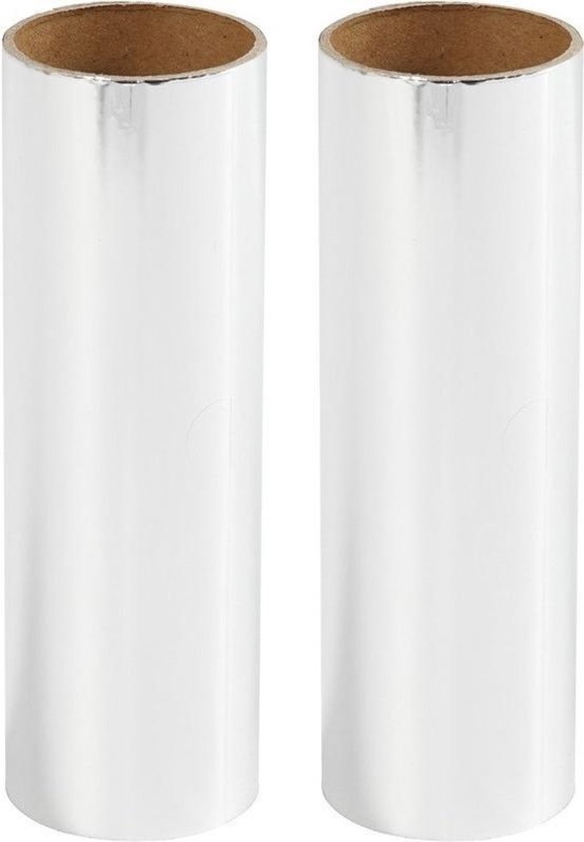 2x rollen hobby transferfolie, in de kleur zilver. Te gebruiken op karton, papier, hout etc. Afmeting: 50 x 15,5 cm. Foto 4 is een voorbeeld van wat u met deze folie kunt maken. Gebruiksaanwijzing: Indien u een kaart wil maken: - Neem de kaart, het karton of een stuk papier - Schrijf/teken met een lijmpen, dubbelzijdig tape of andere lijm wat u wil maken/schrijven - Leg de decoratiefolie er voorzichtig op (met de gekleurde kant naar boven) - Veeg voorzichtig over de folie met een doek of een pasje - Haal de folie er af Er zal nu enkel folie achterblijven op de plekken waar lijm zit. Indien u geen lijm heeft, kunt u ook gewoon de folie op het oppervlak leggen en dan met een harde pen schrijven/tekenen. U kunt het folie meerdere malen gebruiken, houdt er wel rekening mee dat er stukjes zullen missen op het vel. Knutselen met transferfolie/knutsel materiaal.