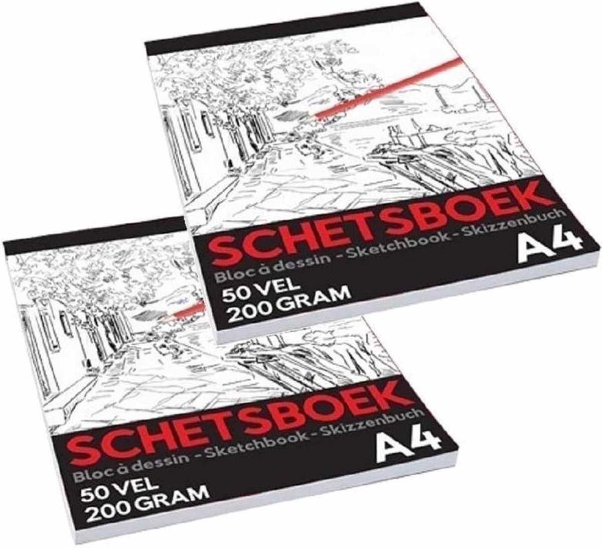2x Schetsboeken/tekenboeken in A4 formaat. De boeken hebben elk 50 vellen van 200 grams papier. U ontvangt 2 schetsboeken. Schoolartikelen/kantoorartikelen/schilderartikelen professionele schetsboeken voor volwassenen en kinderen.