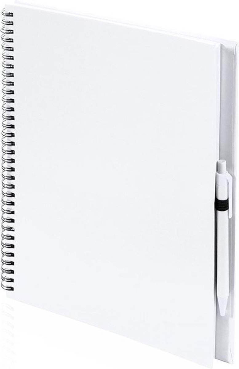 Schetsboeken/Tekeningen maken luxe blok met 80x vellen wit papier met harde witte kaft en spiraal binding. De tekenboeken zijn inclusief bijpassende pennen. De afmetingen zijn ongeveer 21 x 29 x 2 centimeter. Formaat: A4 papier. Super de luxe schetsboeken/opschrijfblokken/notitieblokken voor kinderen en volwassenen. U ontvangt 2 schetsboeken.