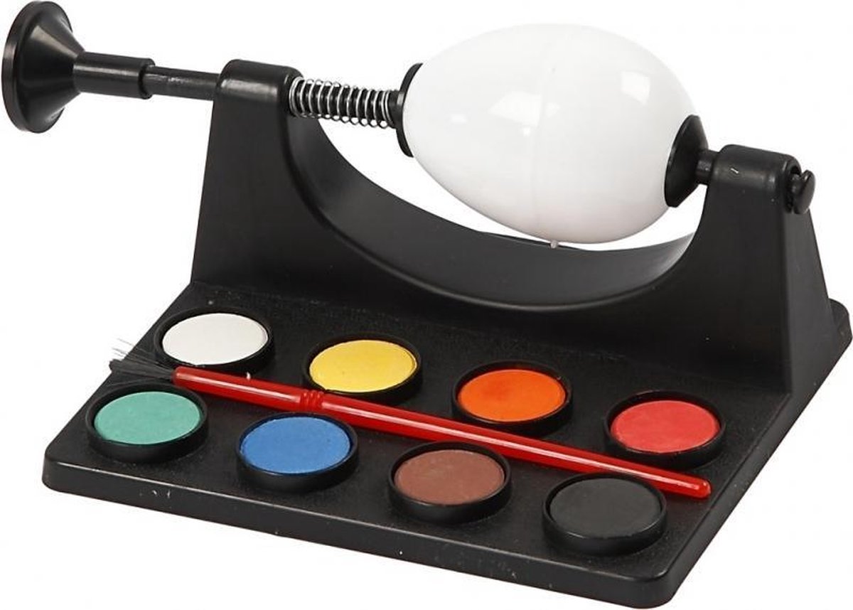 2x stuks eieren schilder set. Dit setje op Paaseieren te schilderen bestaat uit: 1x houder, 1x kwast en 8 kleuren waterverf. Kortom, een compleet setje om eieren te schilderen. U ontvangt 2 setjes.