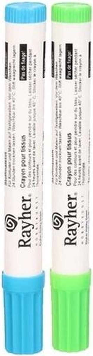 Setje textielstiften met dikke punt. In een setje zitten 2 stuks textielstiften. Kleuren groen en blauw. Met deze stiften kunt u op uw shirt tekenen en schrijven. Schrijven, laten drogen en klaar om te dragen! bestaande uit 1x Blauwe textielstift met dikke punt, 1x Lichtgroene textielstift met dikke punt