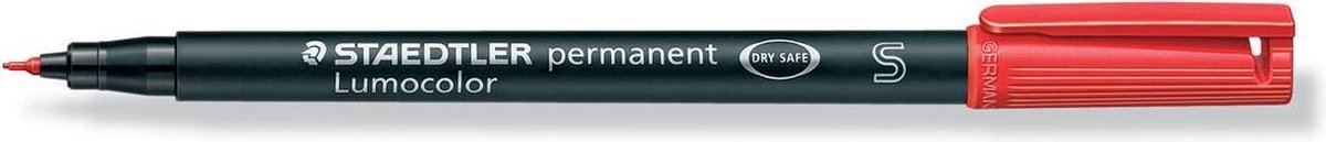 Watervaste stiften voor o.a. retroprojectie. De inkt is ontworpen om op nagenoeg alle gladde oppervlakken te schrijven: plastic, glas, porselein, diepvrieszakjes, OHP-transparanten, CD's/DVD's, enz.'Dry safe ink' technologie: kan tot 2 weken openliggen zonder uit te drogen.\\n\\nrood, superfijn 0,4 mm