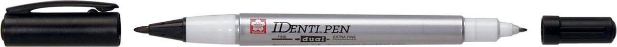 Ronde punt. Twee permanent markers in één: aan één zijde met een taaie glasvezelpunt, aan de andere zijde met een extra fijne kunststofpunt voor details. Voor intens gebruik. Zonder schudden of pompen. Geschikt voor sheets, peel-off vellen, stof, keramiek,hout, enz.\\n\\nzwart