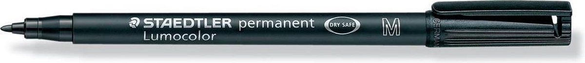 Watervaste stiften voor o.a. retroprojectie. De inkt is ontworpen om op nagenoeg alle gladde oppervlakken te schrijven: plastic, glas, porselein, diepvrieszakjes, OHP-transparanten, CD's/DVD's, enz.'Dry safe ink' technologie: kan tot 2 weken openliggen zonder uit te drogen.\\n\\nzwart, medium 1 mm