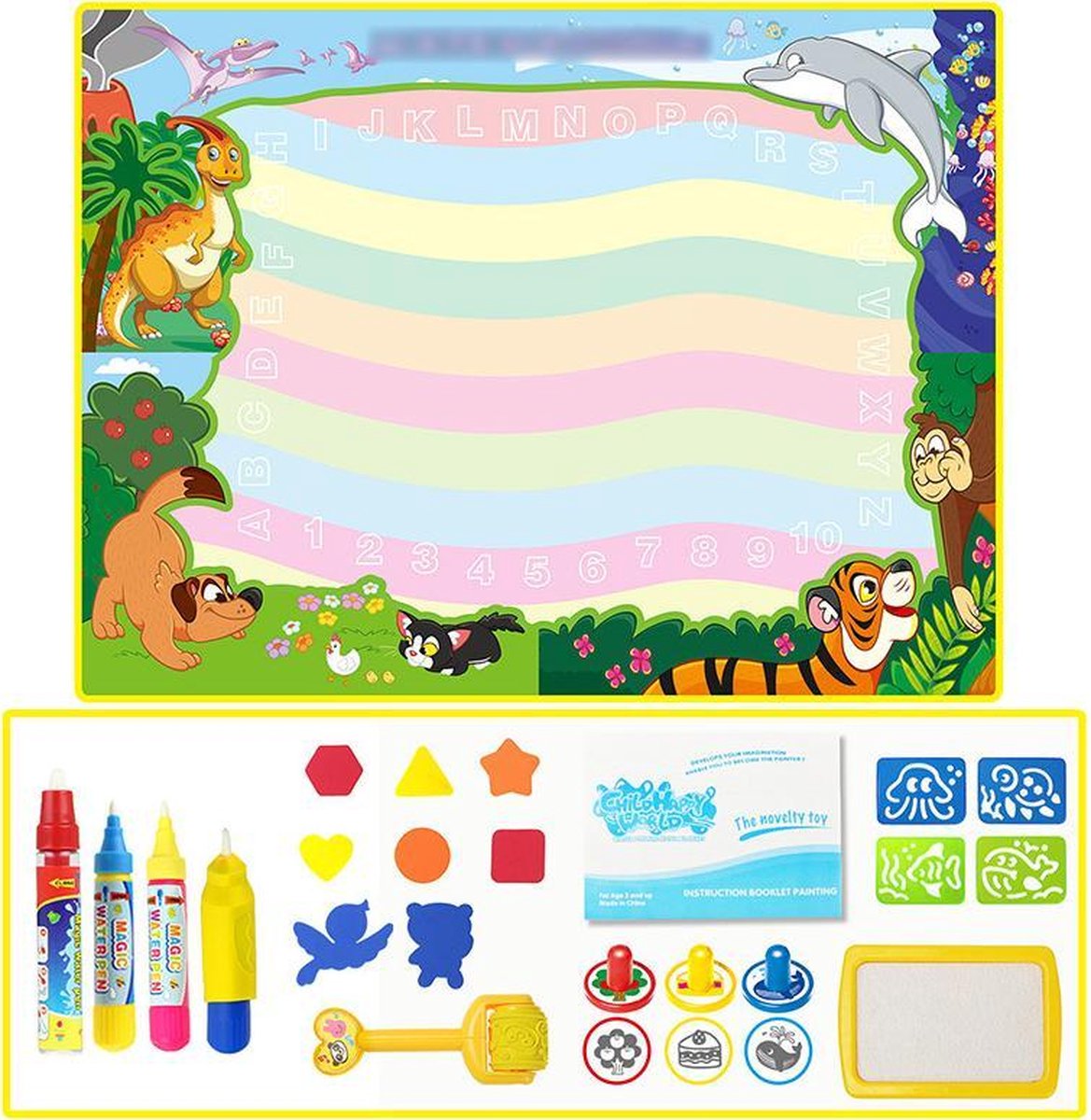 ? Alles-in-1 set ?Extra grote tekenmat ? Oneindig speelplezier ? Lekker tekenen zonder rommel ? De tekeningen verdwijnen automatisch na 5 minuten ? Achterkant van de mat is waterbestendig dus overal kan getekend worden ? Makkelijk schoon te maken ? Complete set met heel veel extra’s Laat uw kinderen plezier maken op dit unieke speelmat. Dit is niet alleen een superleuke tekenmat voor kinderen maar ook voor de ouders. De stiften werken alleen op de speciale mat. U kunt uw kinderen dus lekker hun gang laten gaan zonder bang te hoeven zijn dat vlekken maken op uw vloer of tafel.