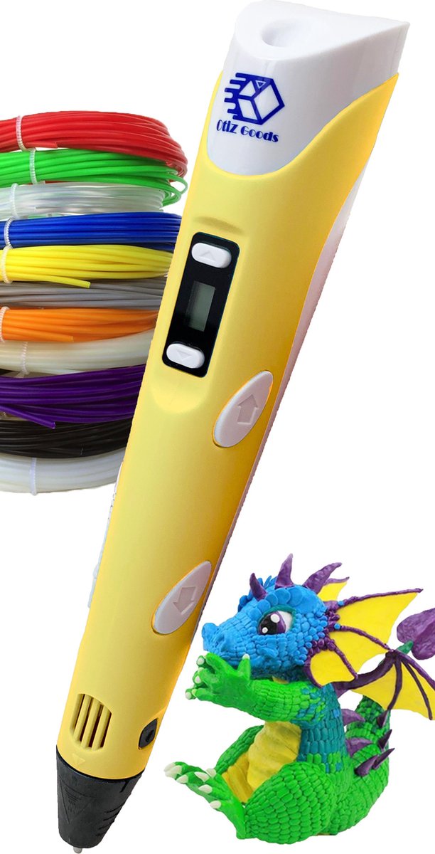 3D Teken Pen Speelgoed Starterset Geel – Tekenen en Knutselen voor Kinderen – 3D Knutselpakket met LCD Scherm en 12x3M Filamenten