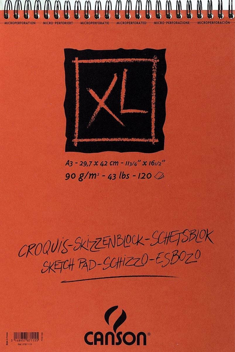 90 g/m². Papier met een weinig uitgesproken korrel, zeer opdikkend. Voor snelle schetsen: potlood, pastel, houtskool en sanguine. Met spiraalbinding op de korte zijde. Met microperforatie.\\n\\nft 29,7 x 42 cm (A3), blok van 120 blad